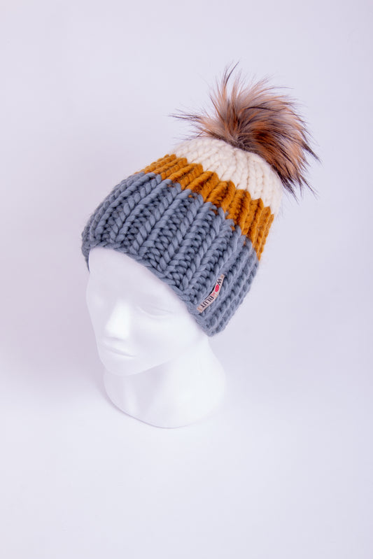 Die handgemachten Pompoms sind selbstverständlich vegan, d.h. aus superkuscheligem Kunstfell hergestellt. Diese sind an allen Beanies innen variabel mit einem Knopf befestigt und können je nach Vorliebe ganz einfach abgemacht werden.